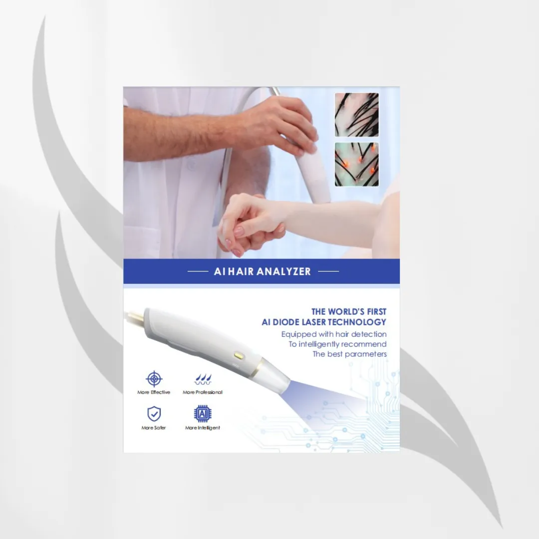 AI kamerás analizátor a kezelőfejben, amely szőrtípus-felismerést, paraméterjavaslatot, valamint vendégprofil- és protokollmentést támogat.